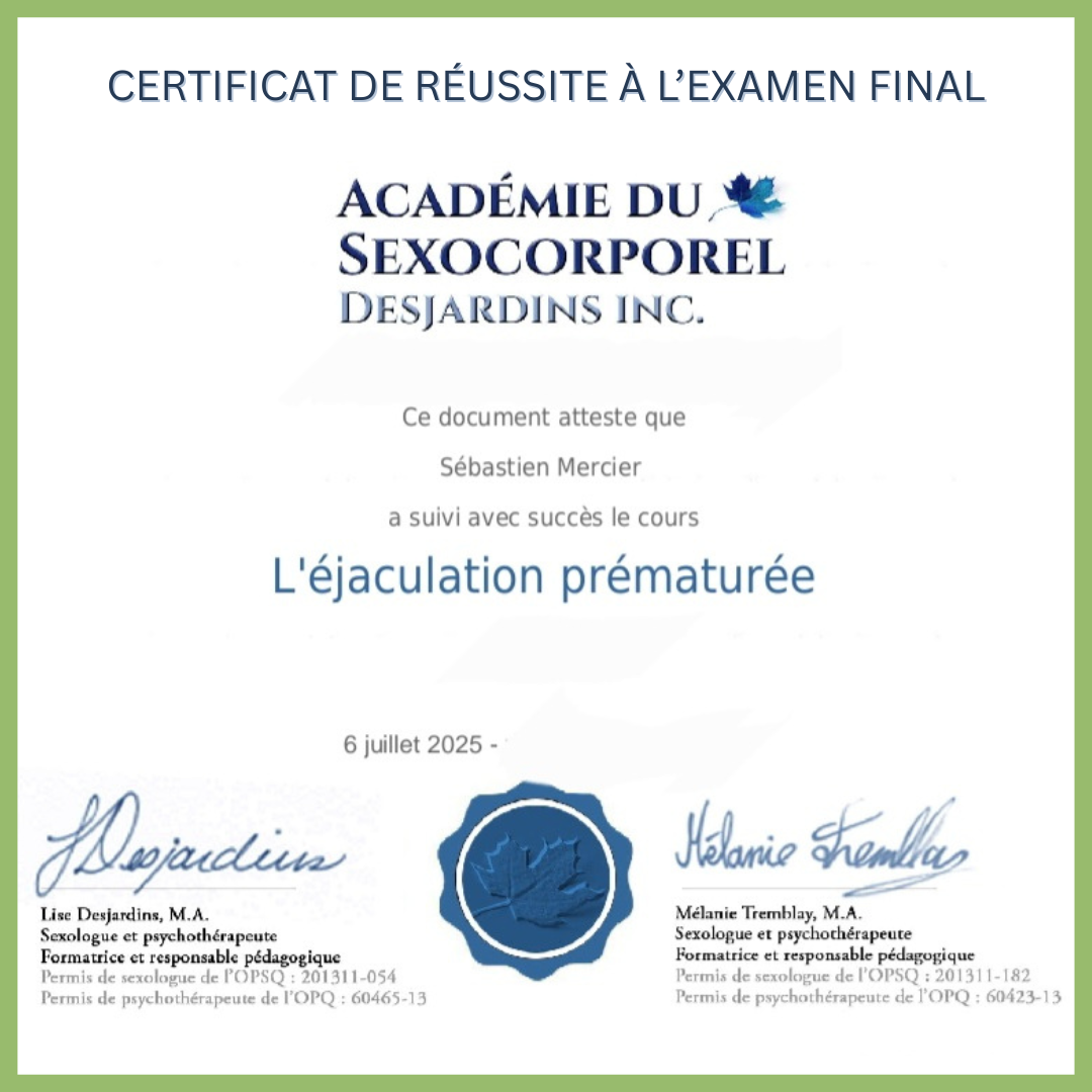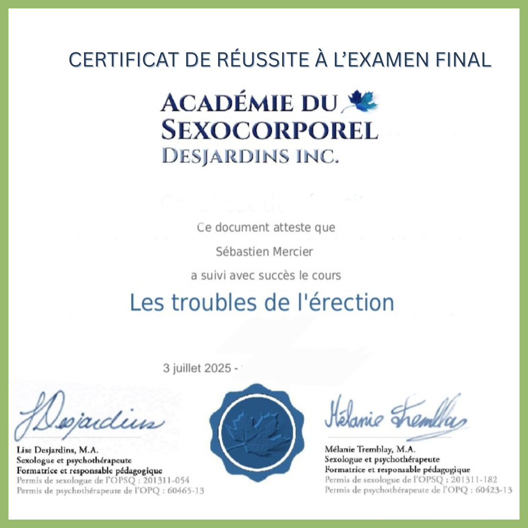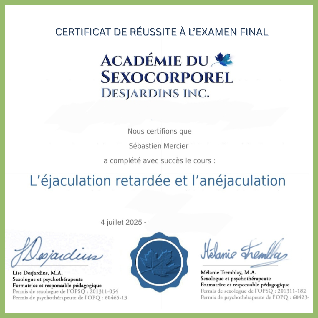 Des formations spécialisées en sexualité masculine pour t'offrir des conseils basés sur la réalité.